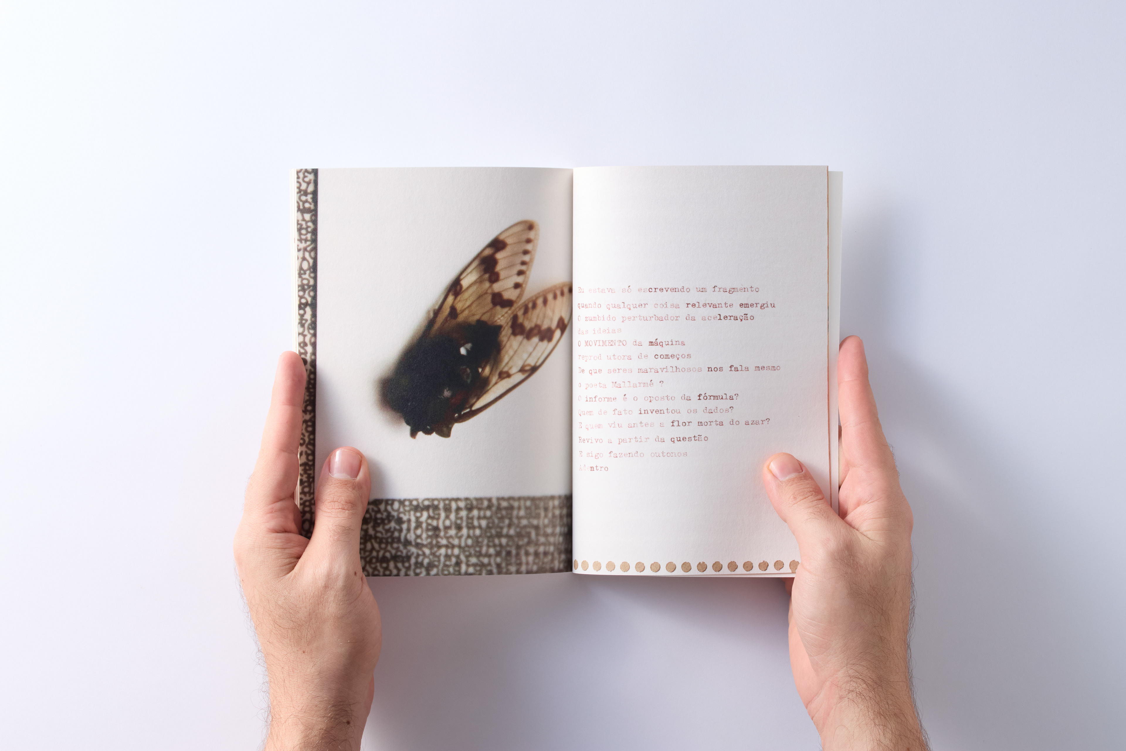 Three small notebooks in search of a reflection that considers the literary work through the lens of transience: of language and its codes, of the human and the natural. Miligramatura, by Helen Fadul, is built upon a voice seeking its framework: the typewritten word, cut, deconstructed, glued, transformed into drawing. A narrative always unfinished in its poetic function; a polymorphic manifesto, which, like nature, is momentary and perishable.