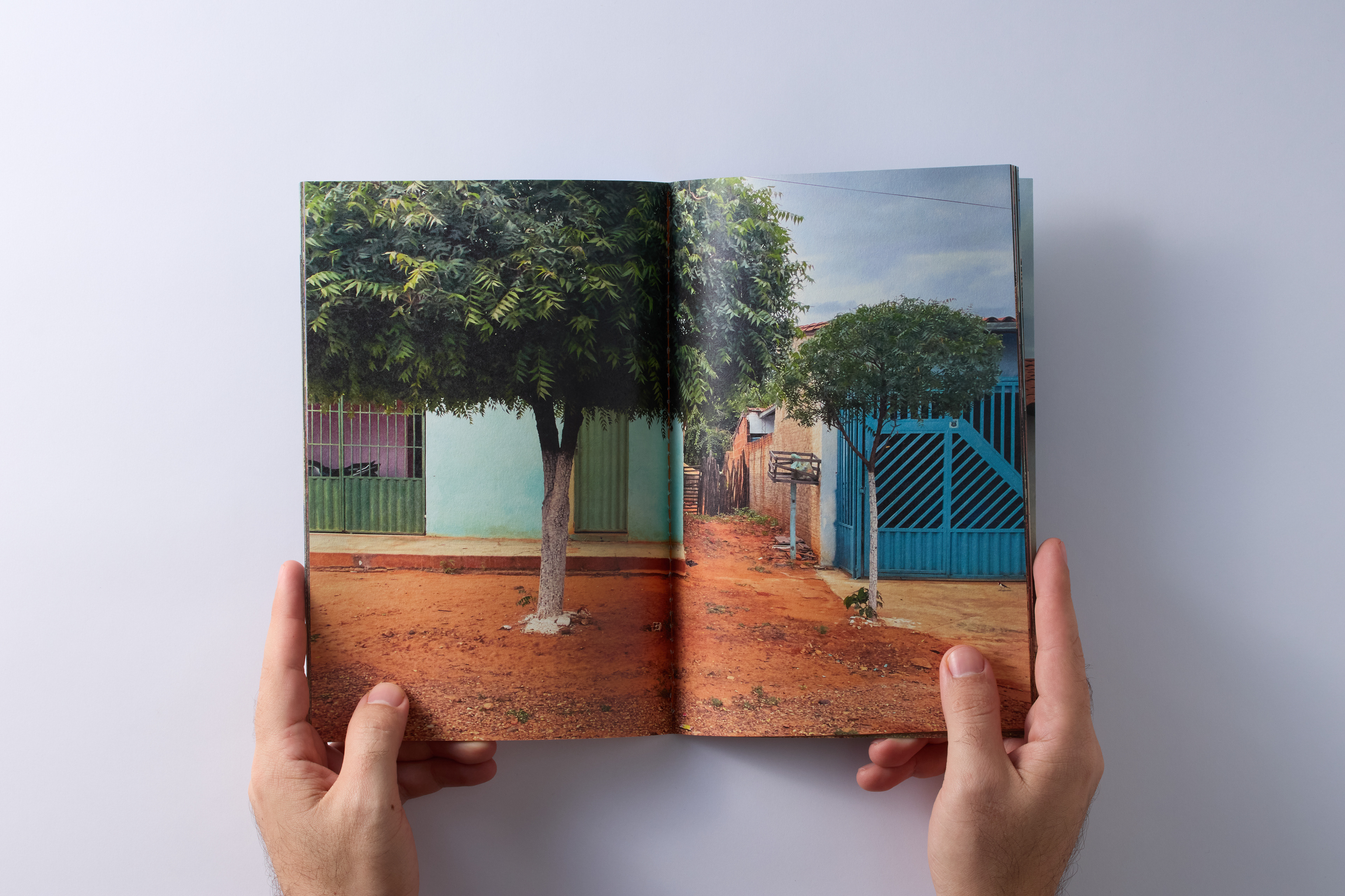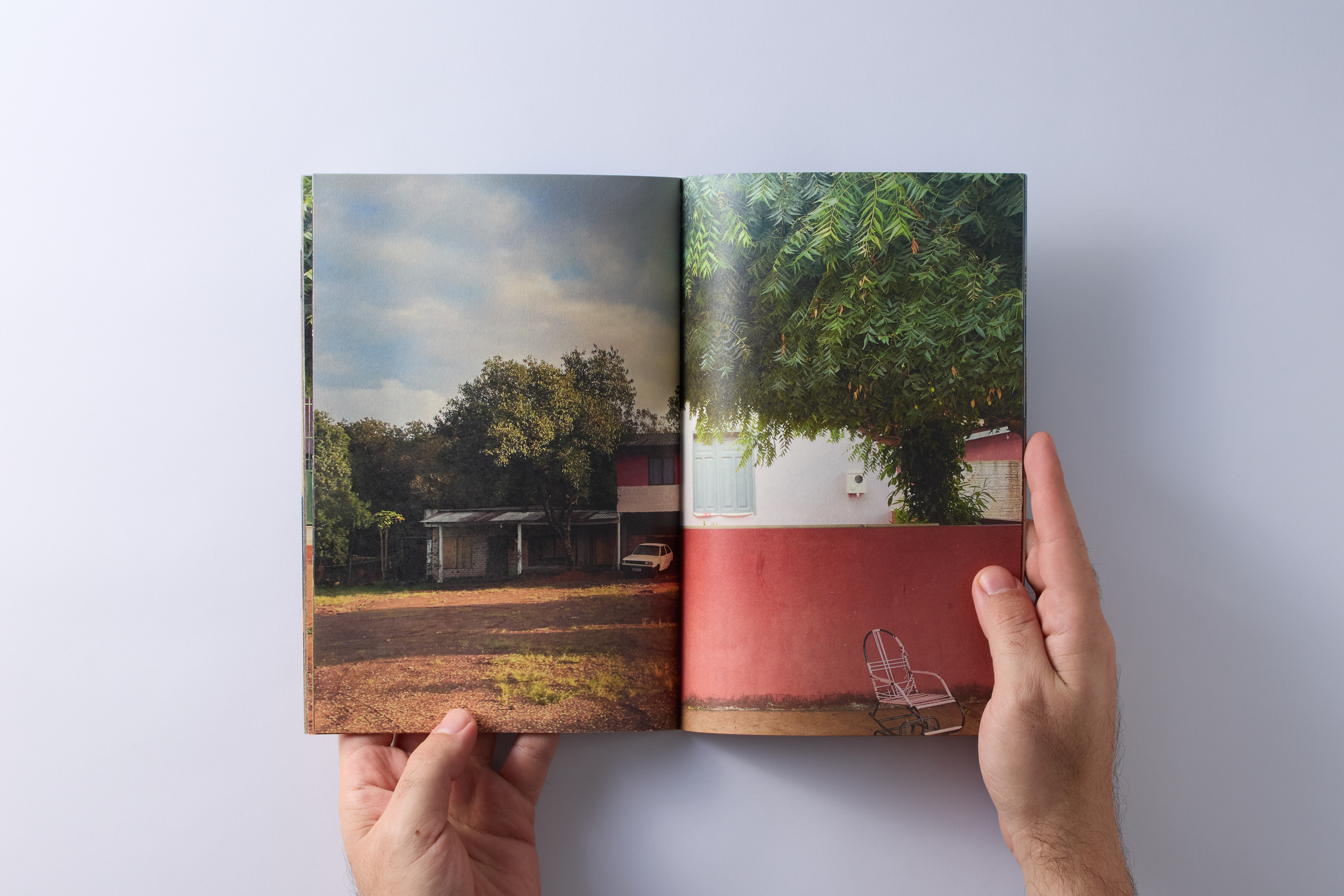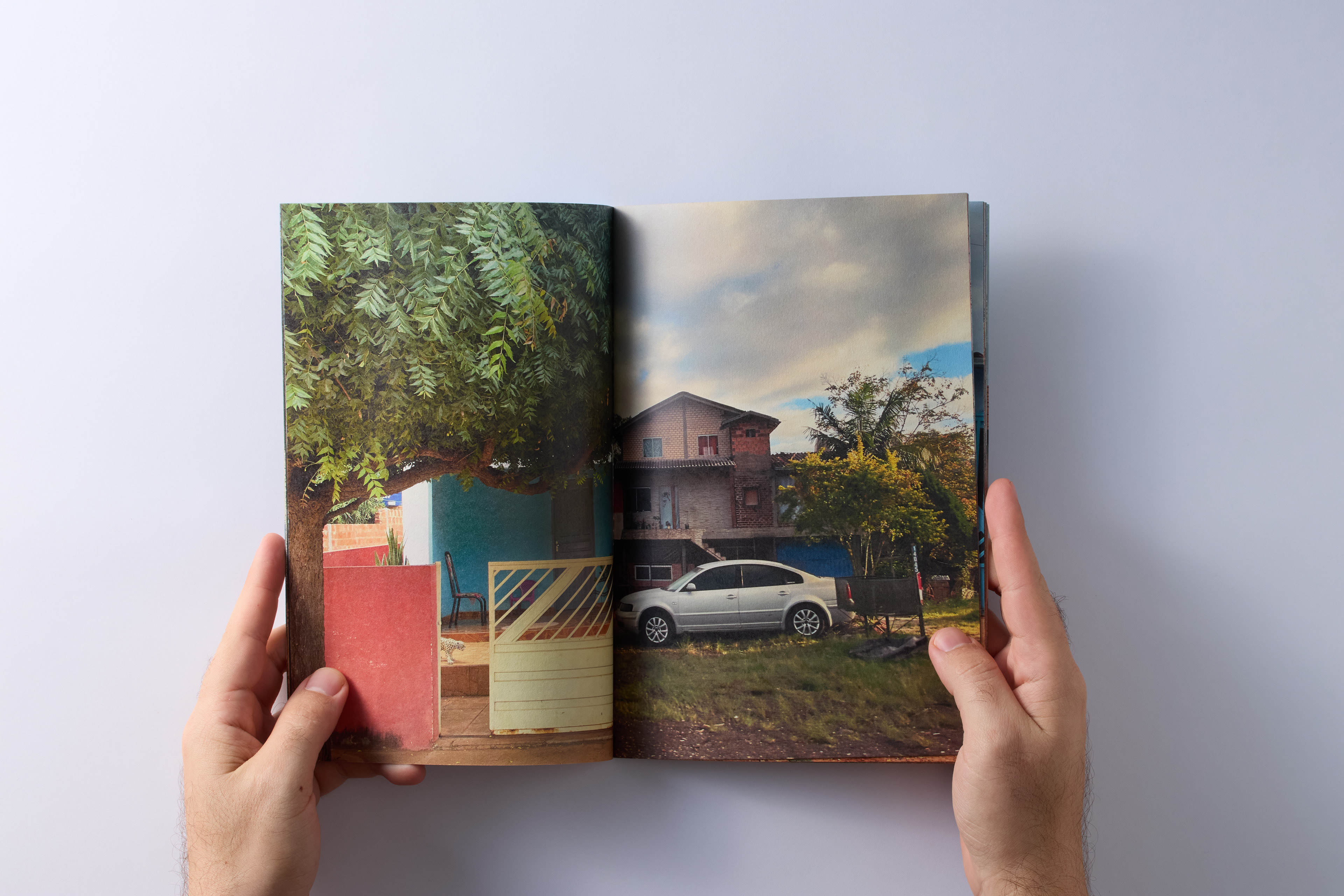 VIA is a zine by Adriana Ferla that presents a photographic journey—images of buildings, mostly houses, captured along roads, paths, and streets in various cities and locations across several Brazilian states. These are quick snapshots, many taken through the window of a moving vehicle; images that reveal what lies on the margins—the architecture or non-architecture present in the photographs, the passage of time accentuated by the colors painted on the houses, now faded or covered in mud or dust. There is no logical itinerary in the publication; the images are connected—or separated—by the folds or cuts of